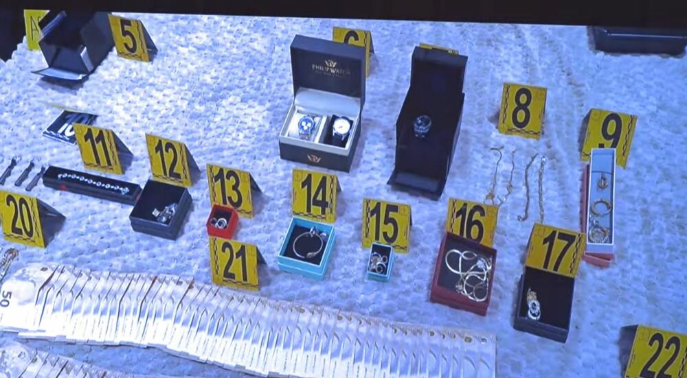 Në konferencën e thirrur nga Prokuroria e Prizrenit janë publikuar edhe disa fotografi nga paratë, stolit e arit e orat e shtrenjta që janë sekuestruar në bastisjen e sotme nëpër shtëpi e apartamente të të lartcekurve