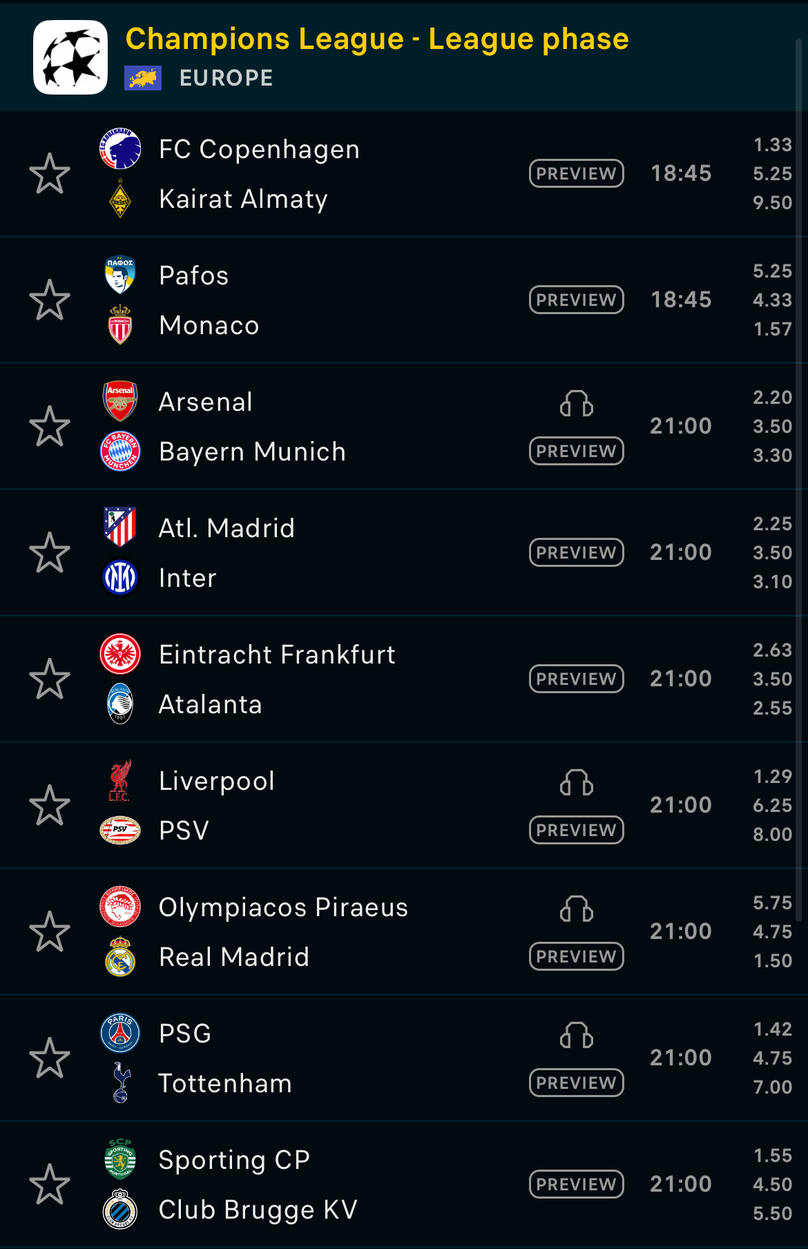 Përballje interesante pritet të jetë edhe ajo mes Atletico Madrid dhe Inter, ndërsa Real Madrid luan në transfertë ndaj Olympiacos.