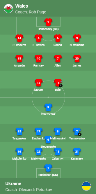 Janë publikuar formacionet zyrtare për ndeshjen Uells – Ukrainë.