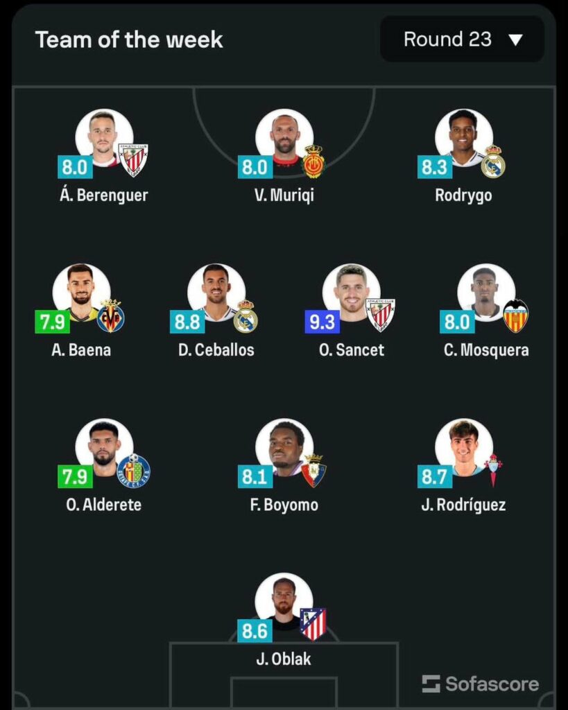Ka dalë formacioni i javës së 23-të në La Liga sipas “Sofascore”.